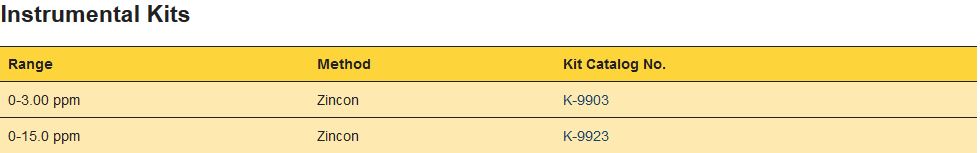 Die Methode von CHEMetrics bestimmt lösliches Zink in Trinkwasser und Abwasser. Zink reagiert mit dem Reagenz Zincon in einer gepufferten alkalischen Lösung unter Bildung eines blauen Komplexes. Störungen durch andere Schwermetalle können durch die Zugabe von Cyanid eliminiert werden. Aus Sicherheitsgründen wurde Cyanid jedoch nicht werksseitig hinzugefügt. Die Ergebnisse werden als ppm (mg/L) Zn angegeben. Haltbarkeit: Obwohl das Reagenz in der Ampulle stabil ist, hat die Indikatorlösung eine 8-monatige Haltbarkeit. Wir empfehlen die Lagerung von Mengen, die wird innerhalb von 7 Monaten verwendet werden.